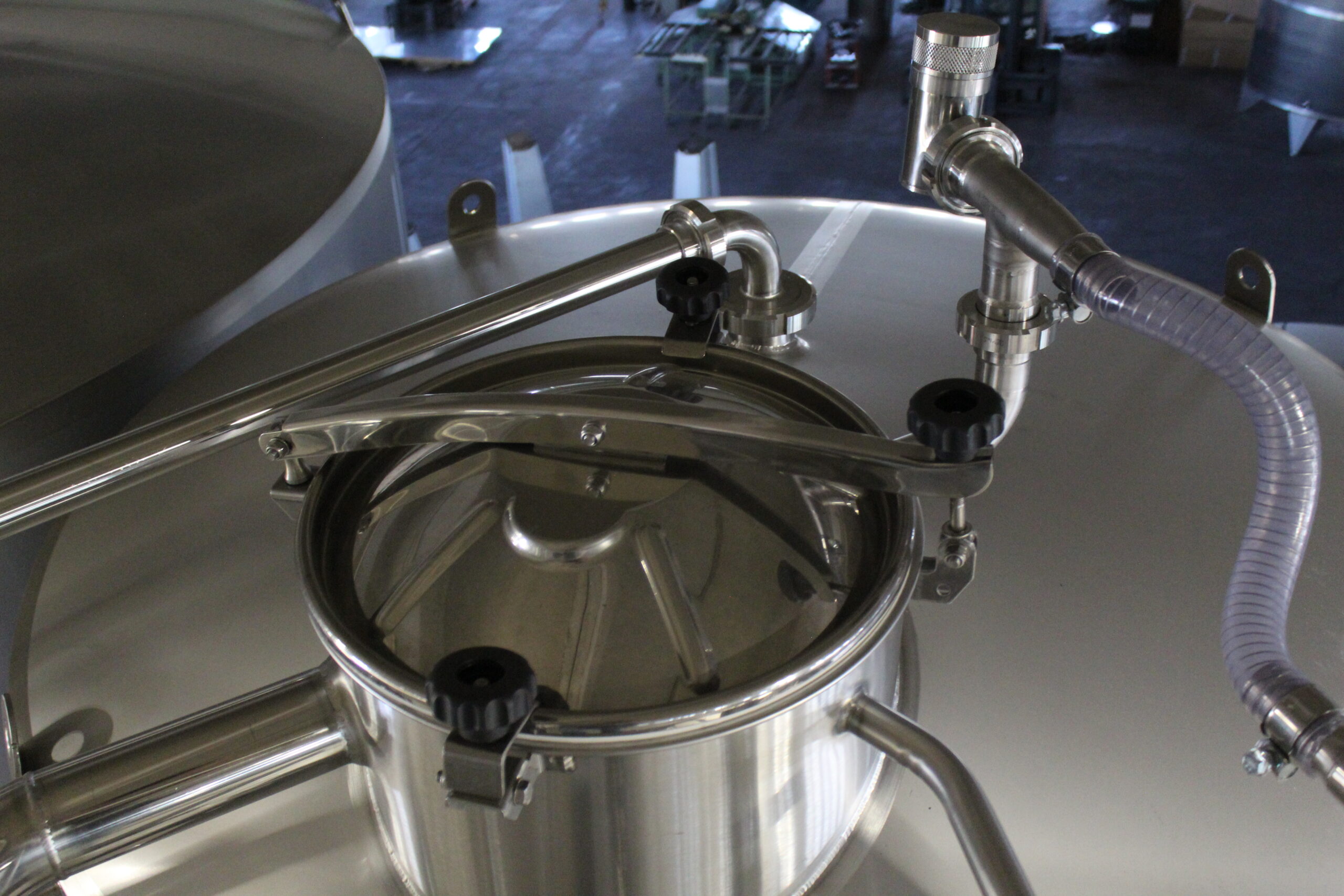 Raccorderia e Valvolame specifico: Integriamo raccorderia DIN o Clamp, totalmente smontabile per agevolare le operazioni di manutenzione e pulizia.